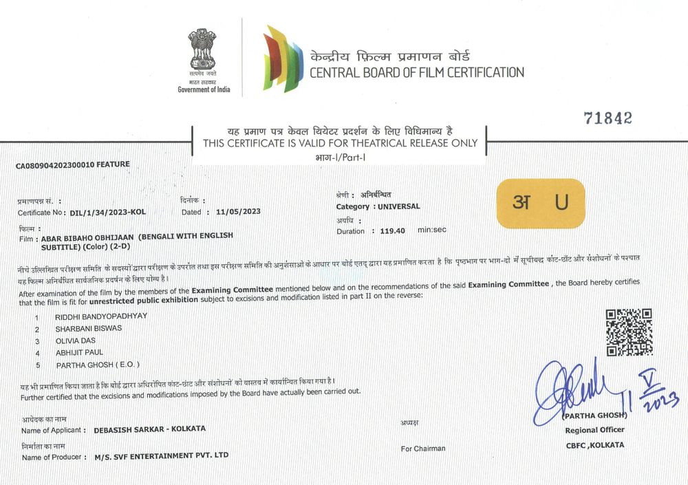 Crew: Soumik Haldar (Director), Animesh Ghorui (Director of Photography), Jeet Gannguli (Music Director)