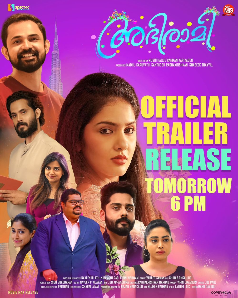 Crew: Mushthaque Rahman Kariyaden (Director), Shihab Ongallur (Director of Photography), Sibu Sukumaran (Music Director)