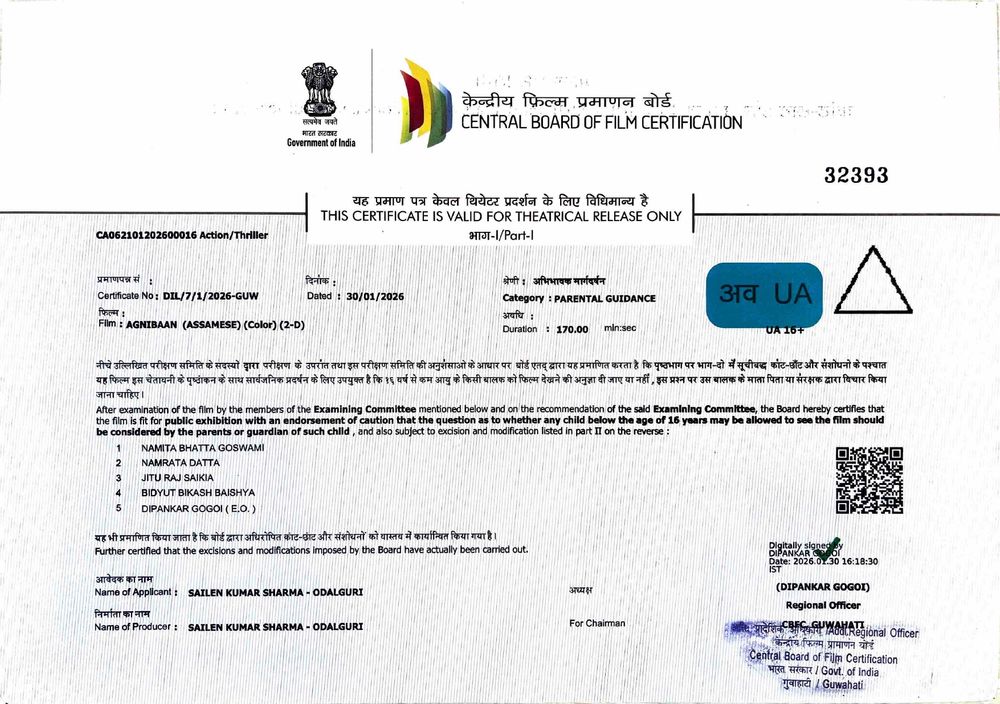 Crew: Mrinmoy Arun Saikia (Director), Pradeep Daimary (Director of Photography), Joy Aditya (Music Director)