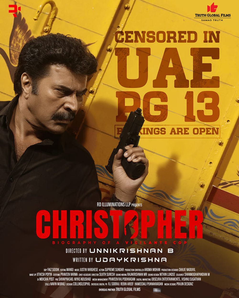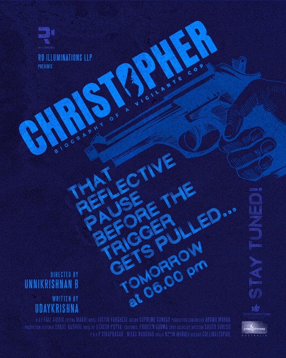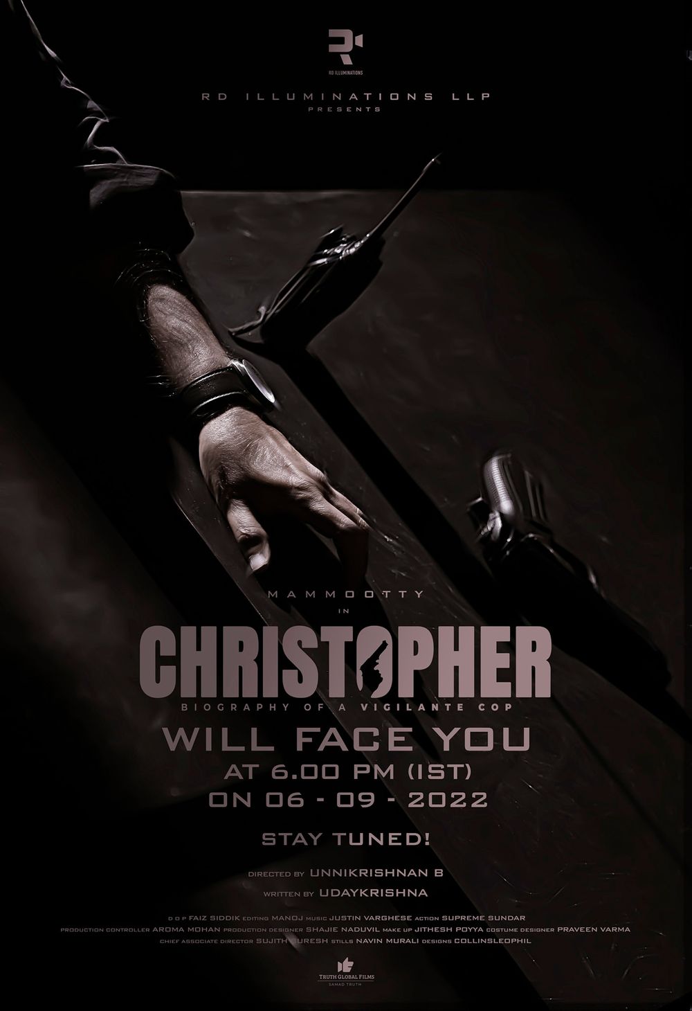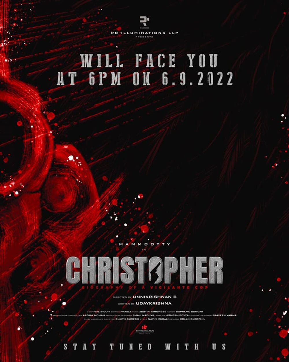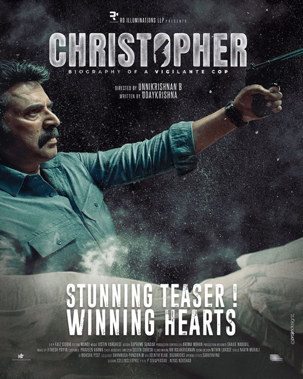 Crew: B Unnikrishnan (Director), Faiz Siddik (Director of Photography), Justin Varghese (Music Director), Collins Leophil (Publicity Designer)