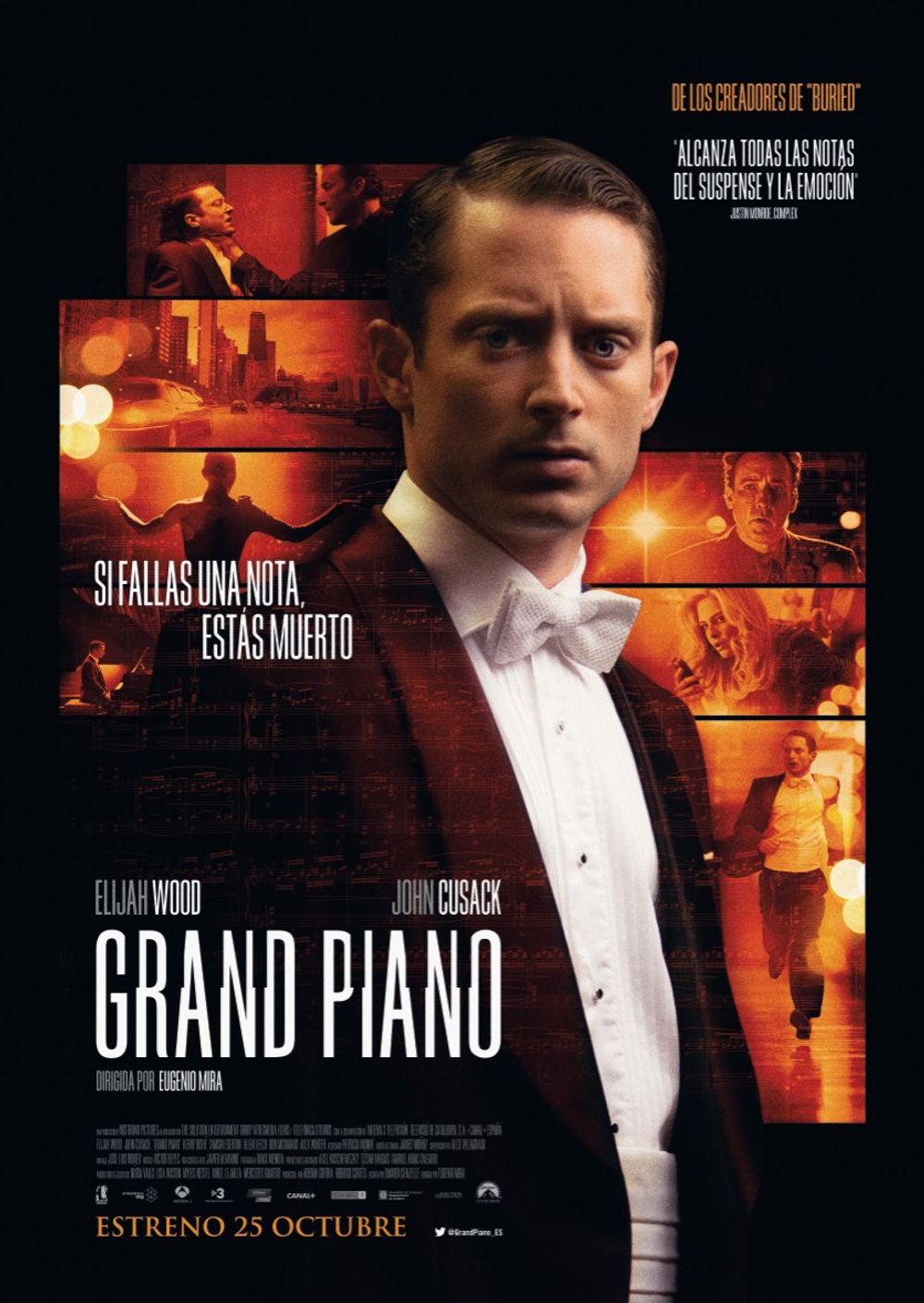 Before the concert, a house usher hands Tom a folder of sheet music. In the folder, he finds the manuscript to "La Cinquette" and discards it. During the concert, Tom finds a note in his sheet music that threatens to kill him if he misplays a single note. Believing it to be a prank, he ignores it, only to find further notes that threaten Emma and a laser dot that tracks his movement. Disturbed, Tom leaves the stage, shocking the audience. He returns to his dressing room, where he receives a text that instructs him to locate and wear an earpiece so that he can communicate with the assassin, Clem. When Tom returns to the stage, Clem demonstrates his rifle's stealth and range by shooting a nearby spot without alerting anyone.