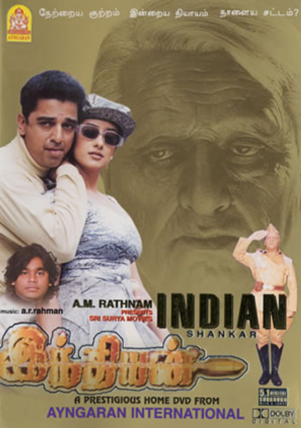 This thought-provoking and socially relevant drama depicts the rampant corruption and bribery that seems to be the norm in the functioning of the government machinery in India. It highlights the dreadful consequences that can happen as a consequence, through a tale told along parallel lines, that finally comes together in an explosive conclusion. One part of the tale follows Chandra Bose alias Chandru (Kamal Haasan), a small-time broker outside the RTO (Regional Transport Office) who gets people to high positions by accepting bribes. He is supported in this work by Subbiah (Goundamani). Paneerselvam (Senthil) plays an officer in the RTO who has conflicts with Subbiah. Aishwarya (Manisha Koirala) and Chandru are in love with each other. Sapna (Urmila Matondkar) is the daughter of Gandhikrishna, an officer in RTO. Her father promises to get Chandru a job of being a brake inspector in the RTO, if he runs errands for them. He agrees to work for them, and soon he becomes a brake inspector. The other track is of Senapathy alias Indian (Kamal Haasan), a 70-year-old man who kills top government officials (like Commissioners of Corporation etc.) in an extreme attempt to weed out corruption from Indian soil. Senapathy is also Chandru's father. Krishnaswamy (Nedumudi Venu) is an intelligence IPS officer out to nab the Indian. He manages to somehow trace his way to Senapathy's house and finds Senapathy, posing as an ex-freedom fighter. Archived newspaper reports say that Senapathy was a soldier in the Indian National Army who was an extremist. Senapathis wife Amirthavalli (Sukanya) is asked what Senapathy did to deserve a freedom fighter tag, and at this point, we are taken to the 1940s. Rebellions against the British, atrocities etc. are shown, culminating in Senapathy marrying Sukanya but leaving for Singapore to join Subhas Chandra Bose as part of the INA. He returns after independence. Krishnaswamy tries to arrest Senapathy, but his attempt is foiled, and Senapathy escapes with his expertise in the art of hitting varmam or pressure points. Senapathy then goes on to commit a murder in front of television audiences by killing a corrupt doctor(Nizhalgal Ravi) who refused to attend immediately to Senapathy's daughter (Kasthuri), who was suffering from third degree burns because he insisted on a bribe, which Senapathy refused. Chandru parts ways with his father because of his excessive insistence on honesty etc. and considers these values to be dead and worthless. How Senapathi evades the police and escapes arrest forms a major portion of the remaining part of the story. Public support is very high for the Indian because he exposes so many corrupt people. Senapathy does not do his son any favours either. Chandru had earlier taken a bribe and given a safety certificate to a bus with faulty brakes. The bus meets with an accident, killing school children it was carrying and thus Chandru is held responsible. Senapathy is bent on giving Chandru the same punishment as he gives others, i.e.death. After a few chase sequences, in the climax sequence in an airport Senapathy kills Chandru and apparently dies in an explosion. Krishnaswamy discovers through a video that Senapathi escaped moments before the jeep he killed his son in, exploded. The epilogue shows Senapathy calling Krishnaswamy from a foreign land (Hong Kong), indicating that he will be back should the need for him arise.