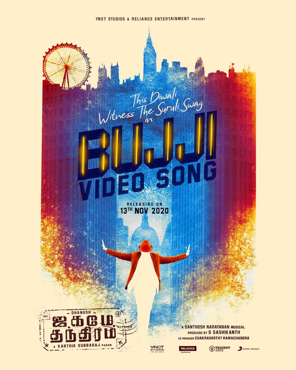 Crew: Karthik Subbaraj (Director), Shreyaas Krishna (Director of Photography), Santhosh Narayanan (Music Director), 24AM Studios (Publicity Designer), Tuney john (Publicity Designer)