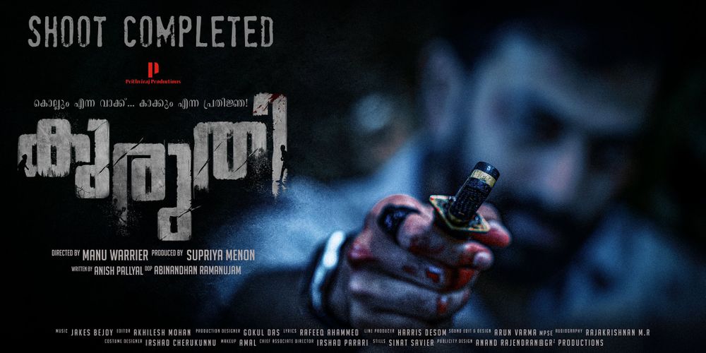 Crew: Manu Warrier (Director), Abinandhan Ramanujam (Director of Photography), Jakes Bejoy (Music Director), MR Rajakrishnan (Audiographer), Anand Rajendran (Publicity Designer)