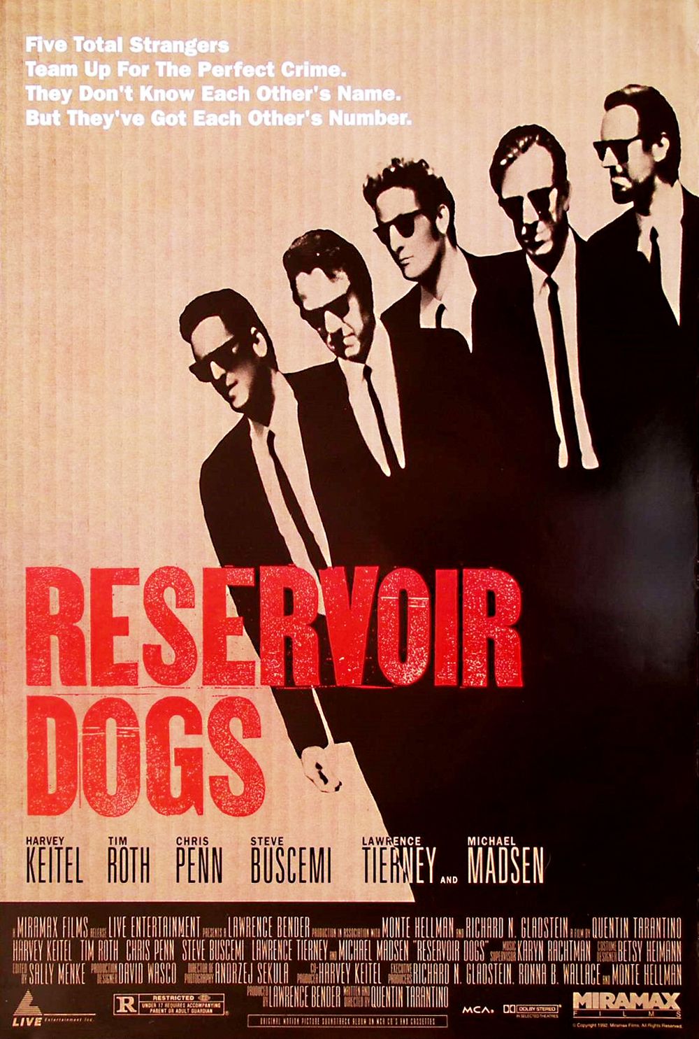 Embedded with excitement and exhilaration, this thrilling tale opens to eight men eating breakfast at a diner. Six of them wear matching black suits and ties and are using aliases: Mr. Blonde (Michael Madsen), Mr. Blue (Eddie Bunker), Mr. Brown (director Quentin Tarantino), Mr. Orange (Tim Roth), Mr. Pink (Steve Buscemi), and Mr. White (Harvey Keitel).
