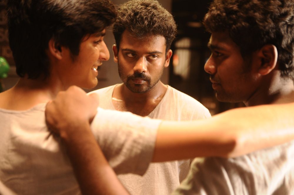Sathya and Kadhir, both orphans, are raised by a local lady-goon in the dark areas of a bustling metro. When she is killed by her own brother after a property dispute. Sathya and Kadhir avenge her death, which lands them in jail. There they befriend two other inmates and manage to escape with them. This is a gritty tale of friendship, betrayal, revenge, and love through the eyes of these boys.