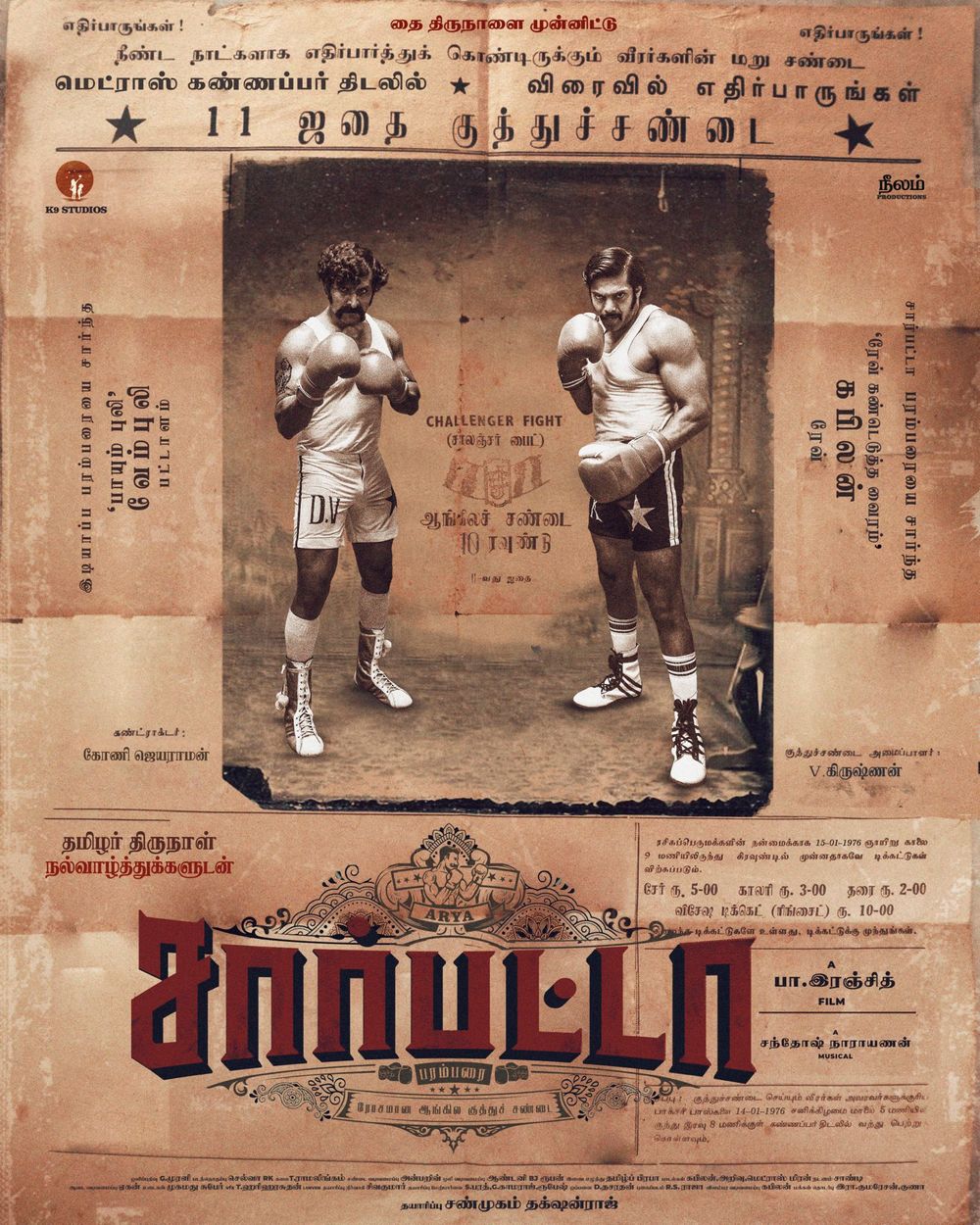 A drama film directed by Pa Ranjith, starring Arya, Dushara in the lead roles.