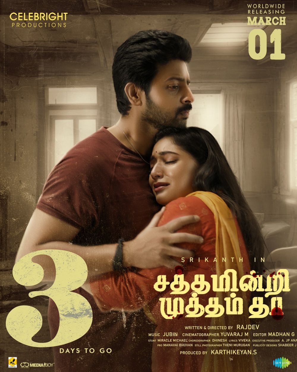 Crew: Rajdev (Director), Yuvaraj M (Director of Photography), Jubin (Music Director)