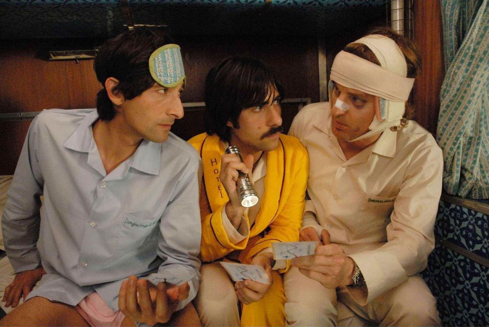 A businessman in India (Bill Murray) fails to catch his train as it pulls out of a station. He is beaten to it by a younger man, Peter Whitman (Adrien Brody), who is carrying heavy luggage. Peter reunites with his brothers Francis (Owen Wilson) and Jack (Jason Schwartzman) on the luxury train called "The Darjeeling Limited," which is traveling across India. The brothers have not seen each other since their father's funeral.