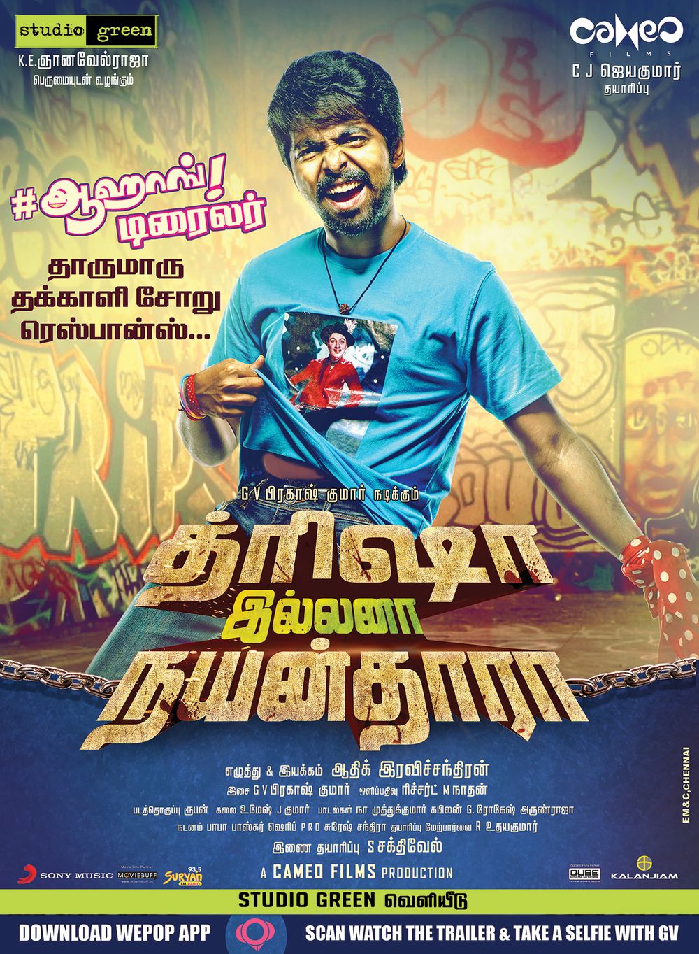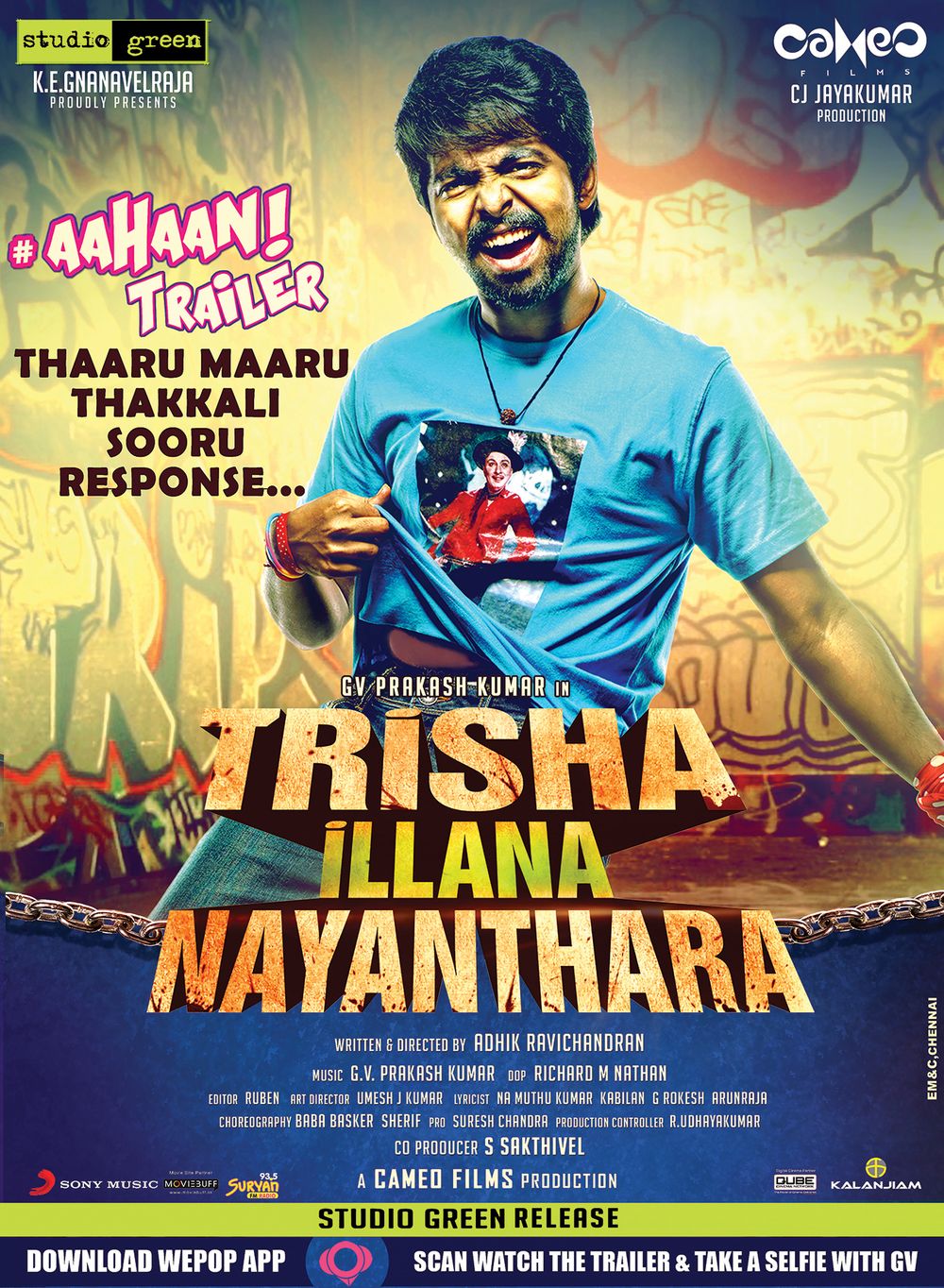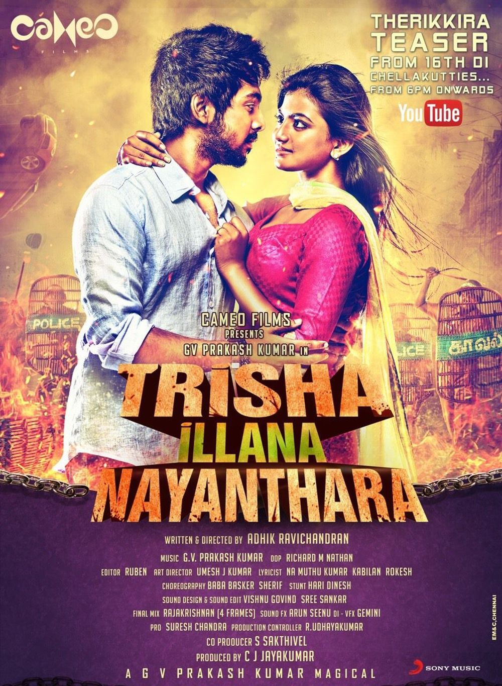 Crew: Adhik Ravichander (Director), Richard M Nathan (Director of Photography), GV Prakash Kumar (Music Director)