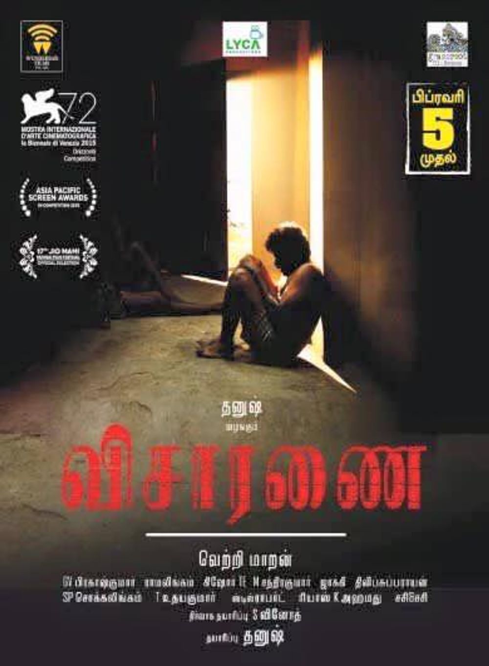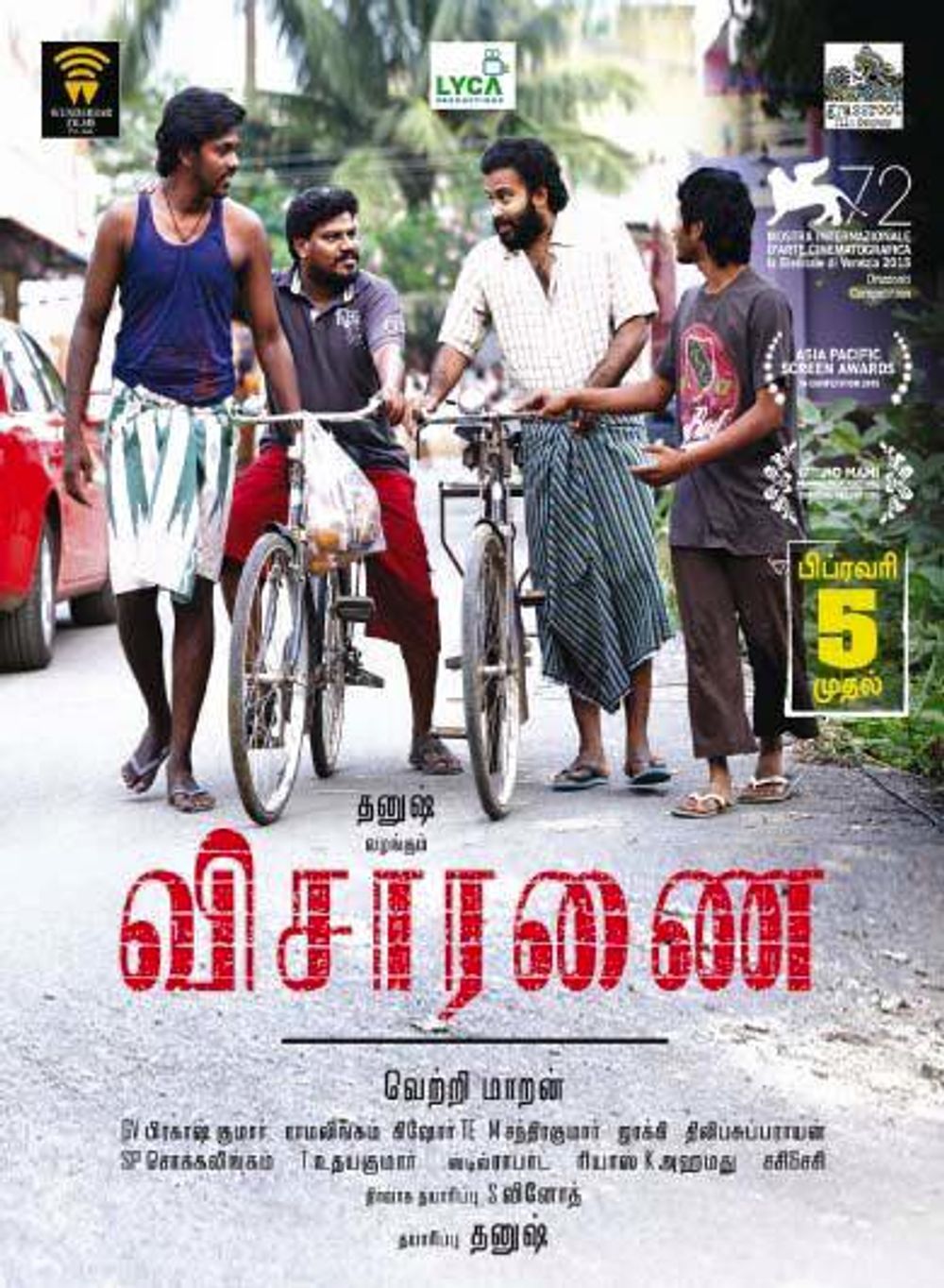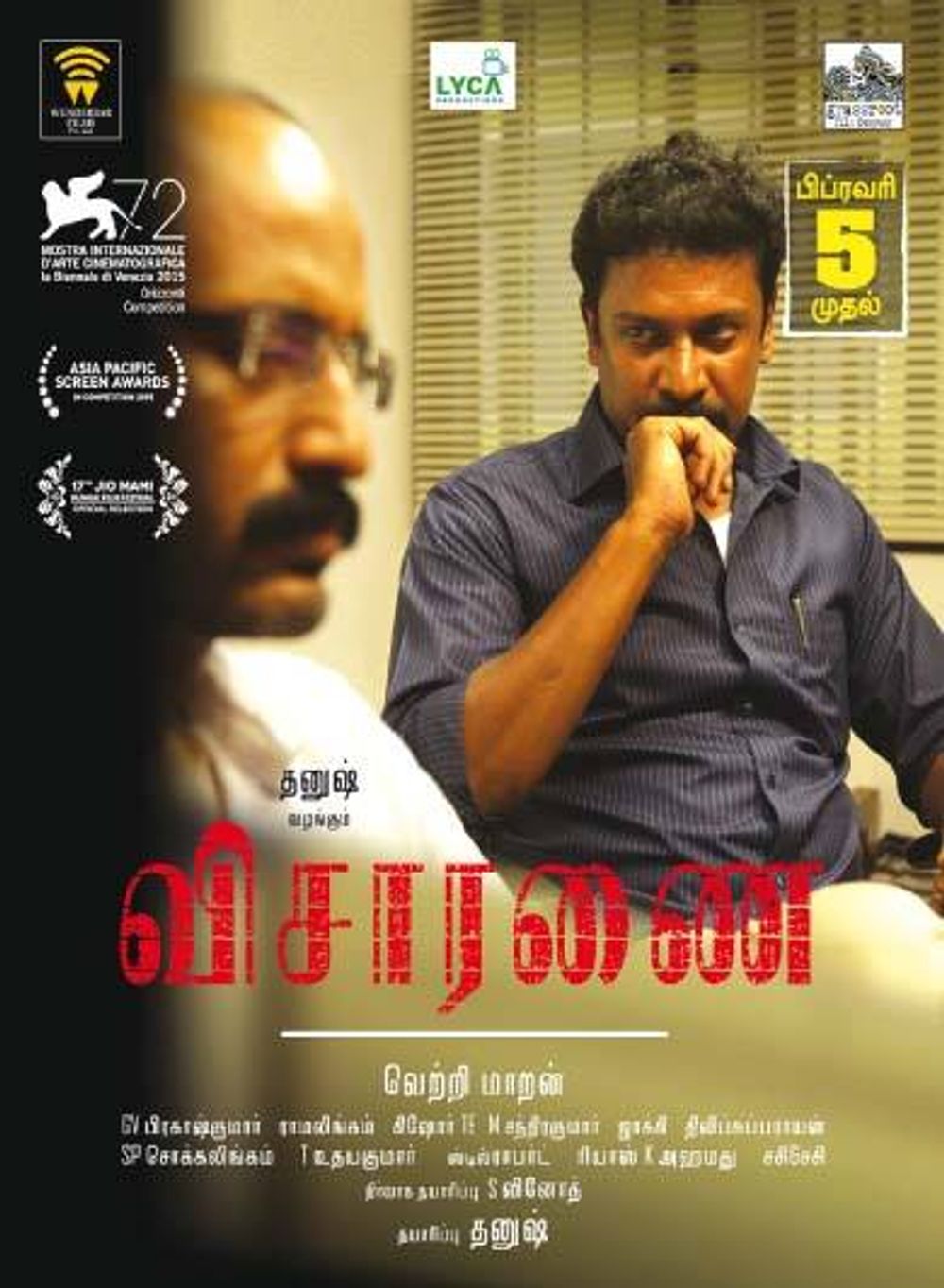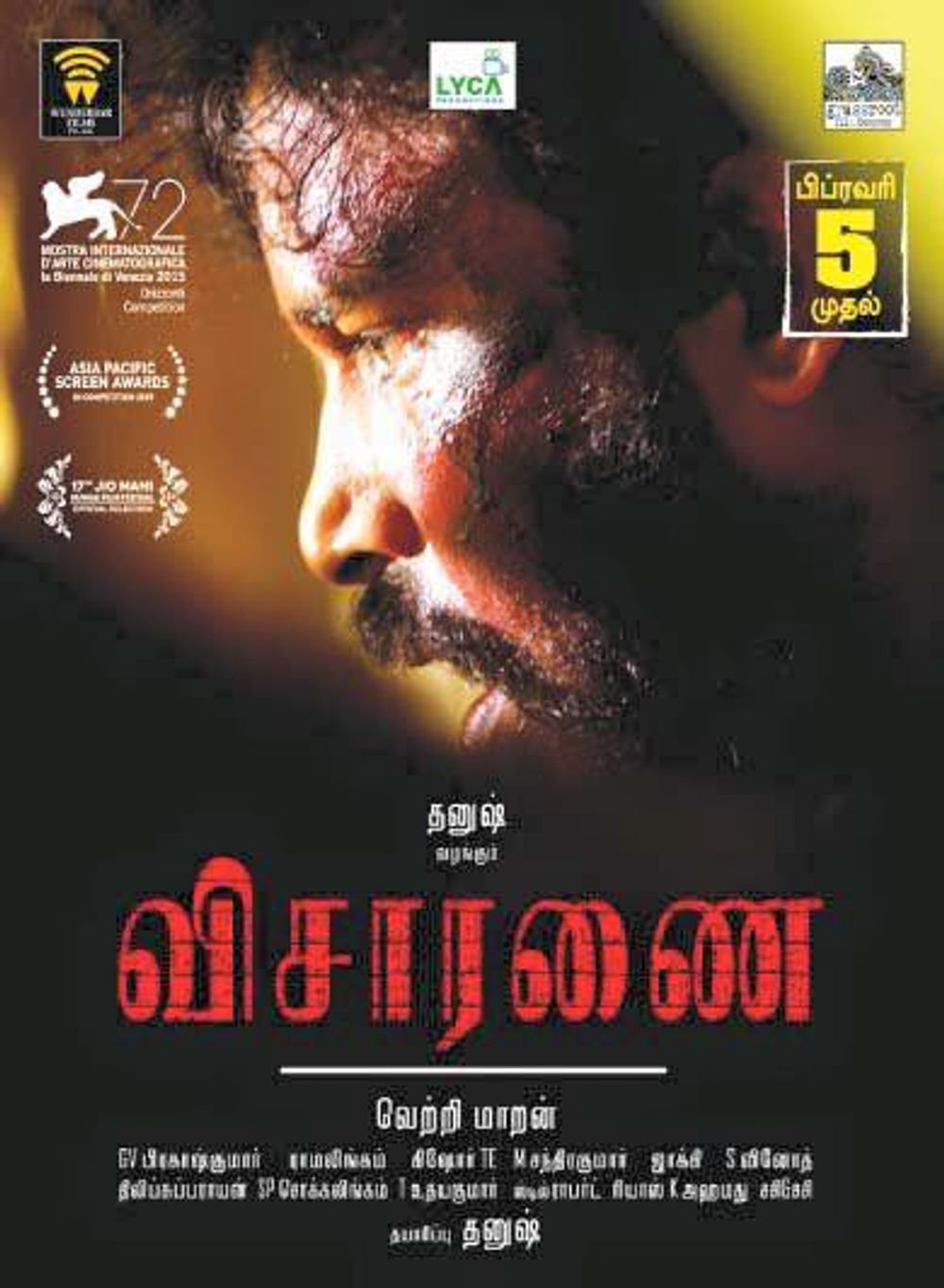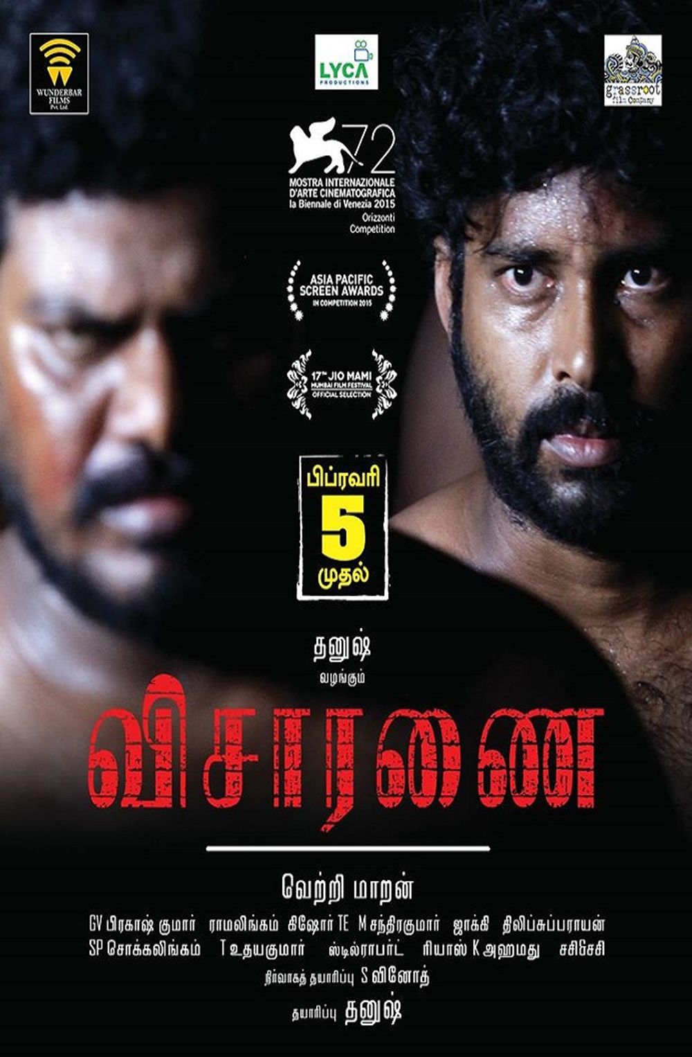 Crew: Vetri Maaran (Director), S Rama Lingam (Director of Photography), GV Prakash Kumar (Music Director)